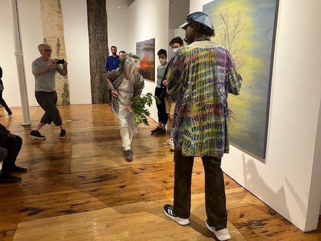 This exhibition was painted on wood panels from crates I had made for my first large travelling exhibition of sculptures called Canoe Dreamings in 2006. Once the sculptures were dispersed, the empty crates were re-purposed into the surfaces for painting, the different wood grains giving stability to the landscape motifs. Staying with the Trouble, a book by Donna J. Haraway has resonances for me. Seeing it through, and seeing it through art. Is Art still a saving power?